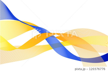 Abstract image featuring flowing blue, yellow, and orange wavy lines that overlap and intertwine. The design is set on a clean white background, representing fluidity, movement, and modern design