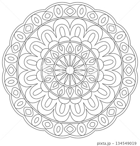 Simple circular floral mandala line art for adult coloring page and zen meditation