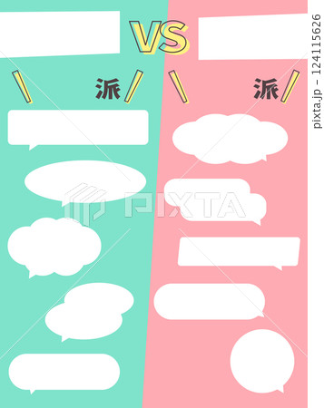 2つの対立するものへの意見やコメントを図示する図解テンプレート