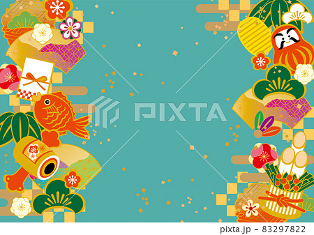年賀状素材 年賀 和柄 和風 縁起物 熊手 招き猫