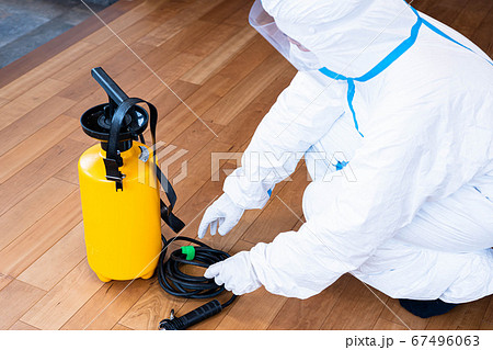 防護服を着てコロナウイルスを消毒するイメージ