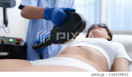 Cosmetologist removing unwanted hair from client body using laser closeup