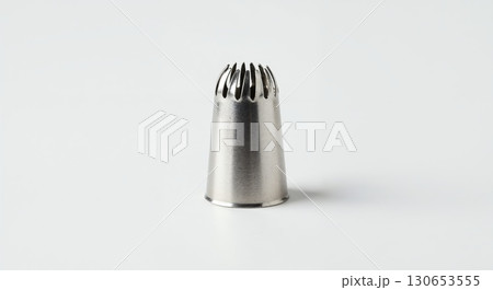 Pastry tip isolated on white background,metal nozzle,photorealistic centered view,baking tool detail