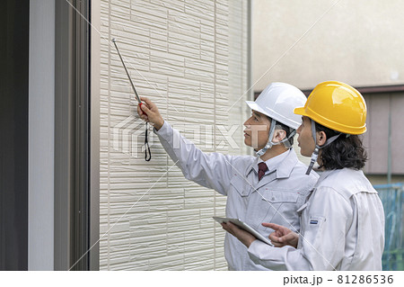 外壁チェックする作業員 施工管理 イメージ