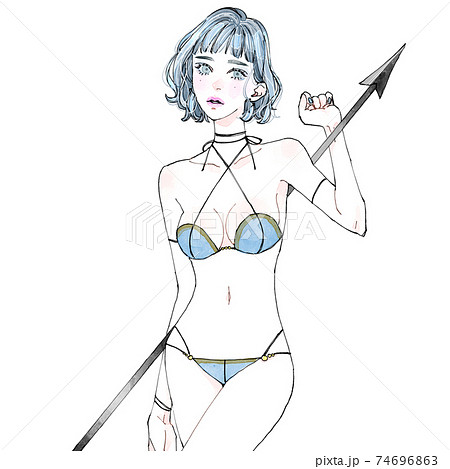 イラスト素材: 十二星座いて座の女性イメージ 擬人化/手描きの水彩画