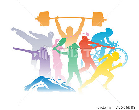 乗馬・陸上・射撃・ラグビー・ロードバイク・アーチェリーオリンピックフィールド競技イラストセット