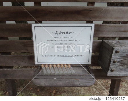 高砂神社の真砂を販売してる様子、兵庫県高砂市、相生の松で知られ、能・謡曲の高砂の舞台の一つ