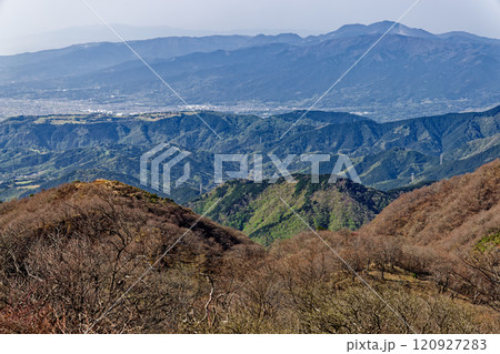 早春の丹沢・塔ノ岳から見る大倉尾根と箱根の山並み