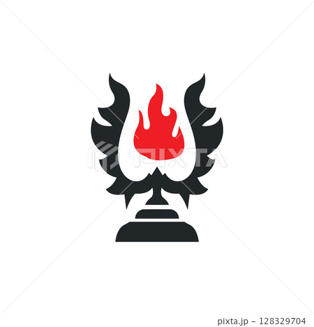 Flickering orange flames dance in a stone bowl, releasing wisps of smoke and casting a solemn atmosphere against a softly blurred background, evoking remembrance and honor