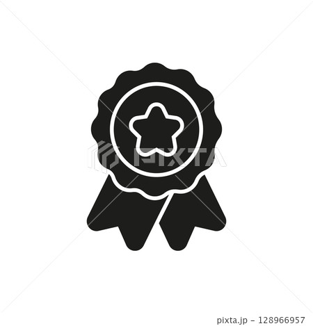 Award Ribbon With Star Solid Icon. Achievement, Excellence Recognition, And Quality Assurance Silhouette Symbol. Distinction And Honor Representation. Isolated Vector Illustration