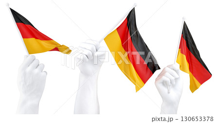Hands waving flag of Germany isolated on white. 3d Rendering