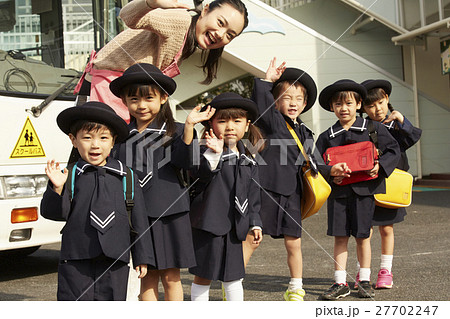 通園バスに乗る園児たち