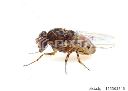 白背景に備蓄していた米の中に湧いたノシメマダラメイガの小さな幼虫