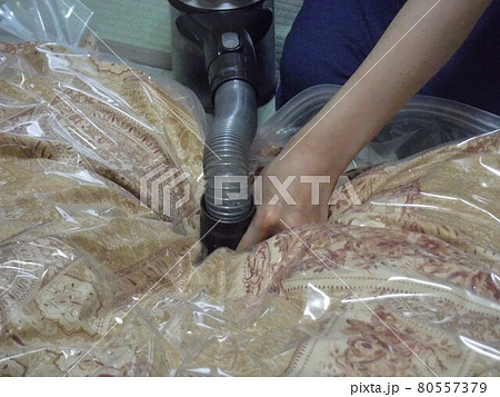 圧縮袋に布団をいれて掃除機で吸う ~Put the futon in the compression