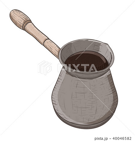 Turka coffee vector stock illustration. Dishes for making bitter coffee. Arabica. Isolated on a white background.
