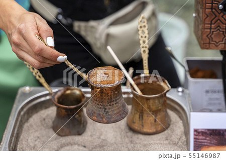 Coffee machine for brewing Turkish coffee on hot sand in Turks in a caf