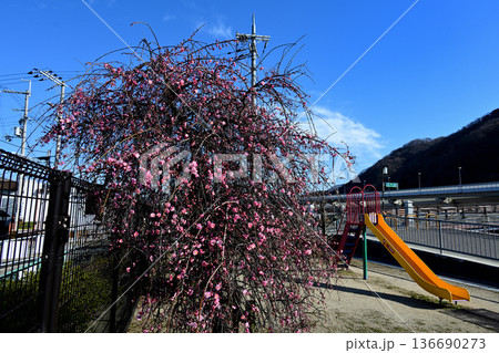 小さな児童公園の枝垂れ梅