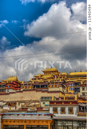 中国雲南シャングリラ 小ポタラ宮こと松賛林寺と青空