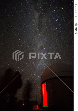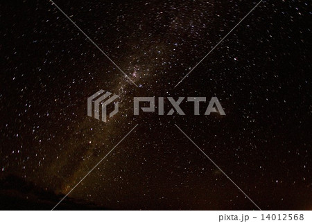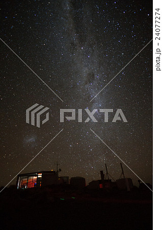 南半球の南米チリ、アンデス山脈のアタカマ高地から見上げる天の川と大小マゼラン星雲
