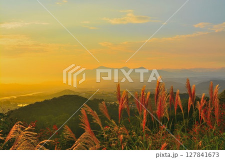 新潟県小千谷山本山高原からの雲海朝焼けの夜明け