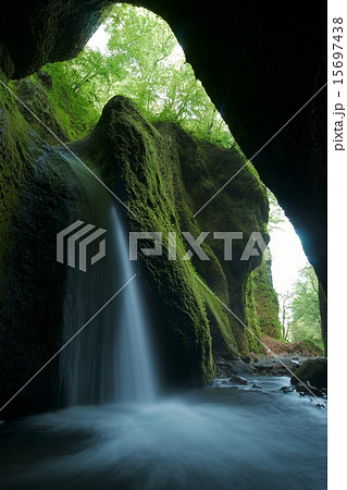 洞窟に流れ込む神秘的な滝 シワガラの滝3 兵庫県美方郡新温泉町