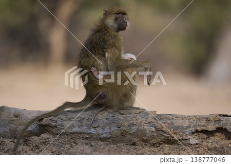 Adult and baby Yellow Baboon