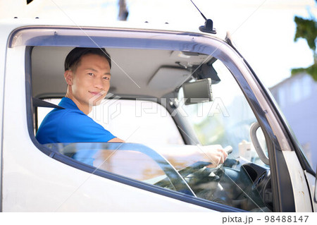 トラックを運転する配達員の男性 運送 物流 ビジネスイメージ