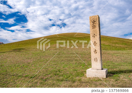 兵庫県神戸市 五色塚古墳に隣接する史跡「小壺古墳」の石碑と緑の墳丘