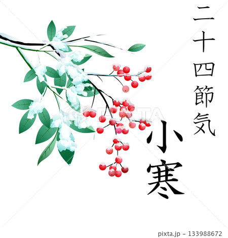 二十四節気 小寒をイメージした雪うさぎと南天のイラスト