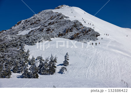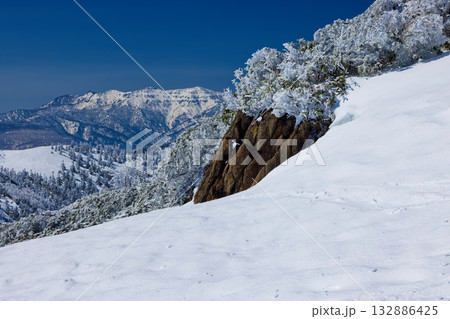 鳩待峠から至仏山へ向かう途中から見る樹氷と上州武尊山