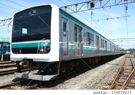 車両基地に停車するE501系電車(通勤快速/土浦表示)