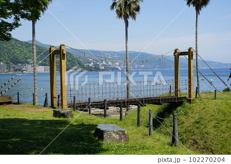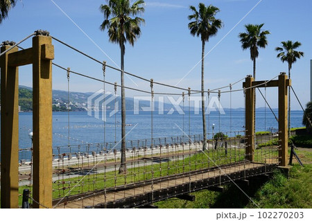 静岡県熱海市の小山臨海公園の吊り橋の風景