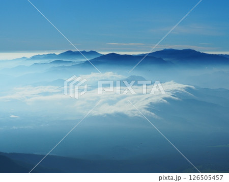 夏の八ヶ岳から望む朝の奥秩父・金峰山と甲武信岳
