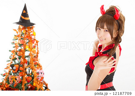 ハロウィンで女悪魔のコスプレをした可愛い女の子