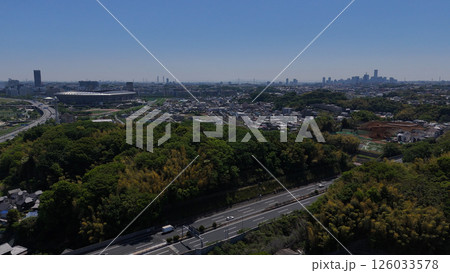 新横浜大橋より横浜労災病院、横浜国際総合競技場方面を望む(神奈川県横浜市)【2021.10】