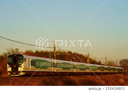 【E653系7両編成】夕陽を浴びて走る特急開運成田山初詣群馬号