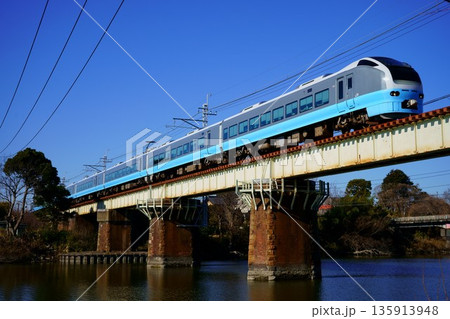 成田線・長戸川橋りょうを渡るE653系・フレッシュひたち色