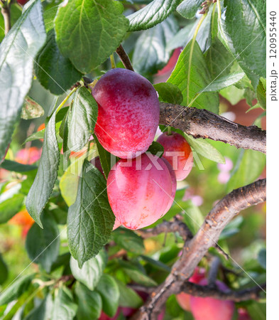 plums on a branch in garden