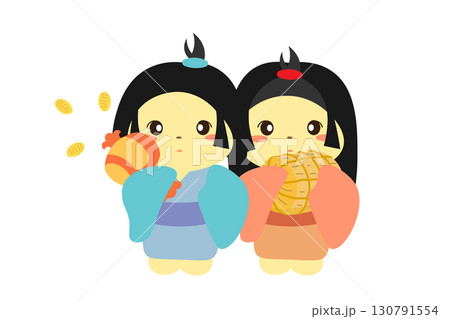 米俵と小槌を持つ座敷童子のイラスト