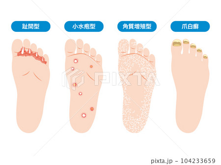 水虫がよく発症する部位のイメージイラストセット(足の裏と足の爪)