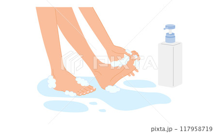 水虫の対策:足をせっけんで丁寧に洗うイメージ(入浴時)