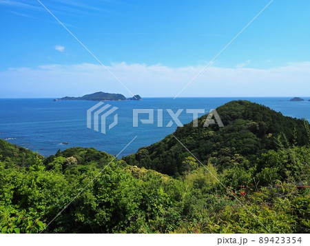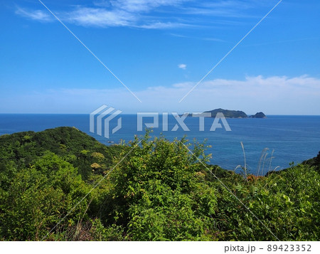 四国・南阿波サンライン・ドライブ中に見える出羽島、津島、小津島・徳島県美波町