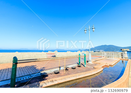 【長崎県】晴天の小浜温泉 足湯(ほっとふっと105)