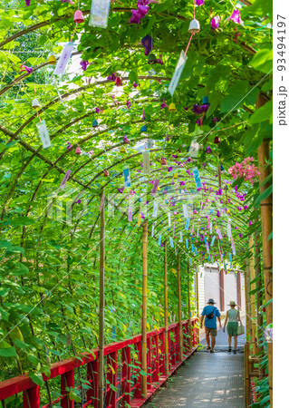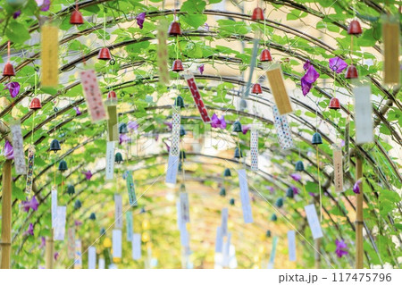 豊田市、朝顔と風鈴のトンネル(小渡夢かけ風鈴)