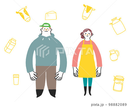 若い酪農家の夫婦 イラスト素材