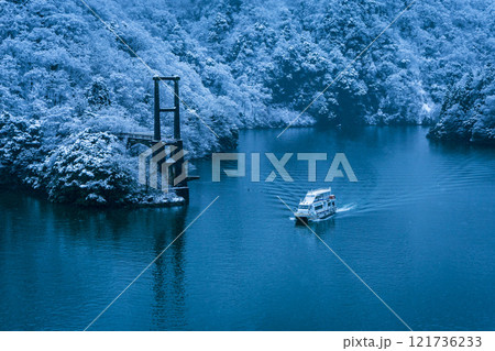富山_雪の庄川峡を行く遊覧船の絶景風景