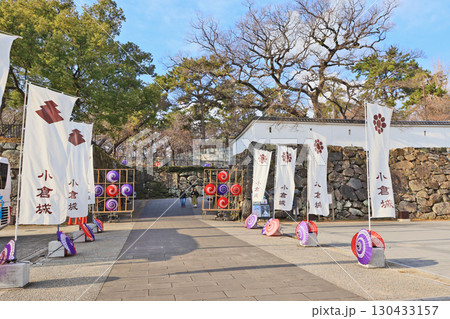 北九州市小倉北区にある観光スポット和傘が飾られた小倉城