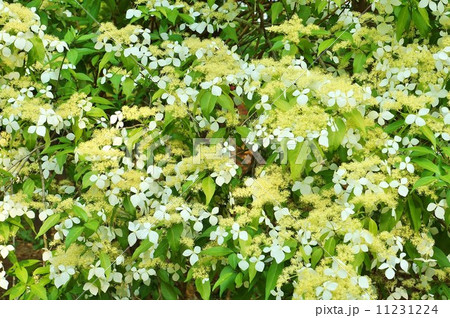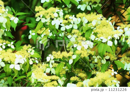 初夏の樹花・ガクアジサイやノリウツギに似るガクウツギの白い装飾花・横位置