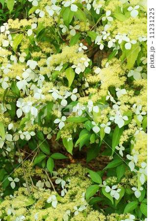 初夏の樹花・ガクアジサイやノリウツギに似るガクウツギの白い装飾花・縦位置