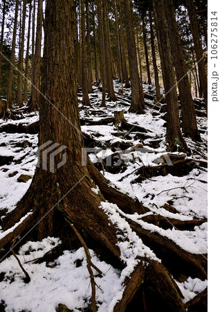 雪積もる伐採木 丹沢の大倉尾根